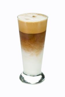 2מוסיפים קרח, חלב מוקצף קר ומנת אספרסו כפול.
