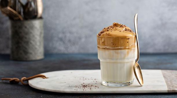 2מקציפים בעזרת בלנדר מוט\מיקסר יד מנת אספרסו כפול\קפה נמס עם סוכר.
