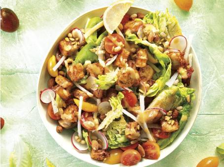 3מפזרים מעל את נתחי עוף הטבעוניים והג'עלה ומגישים.